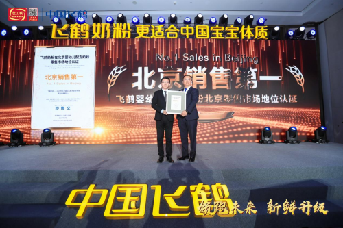 沙利文为飞鹤颁布“飞鹤奶粉在北京婴幼儿配方奶粉市场零售销售额第一”认证证书