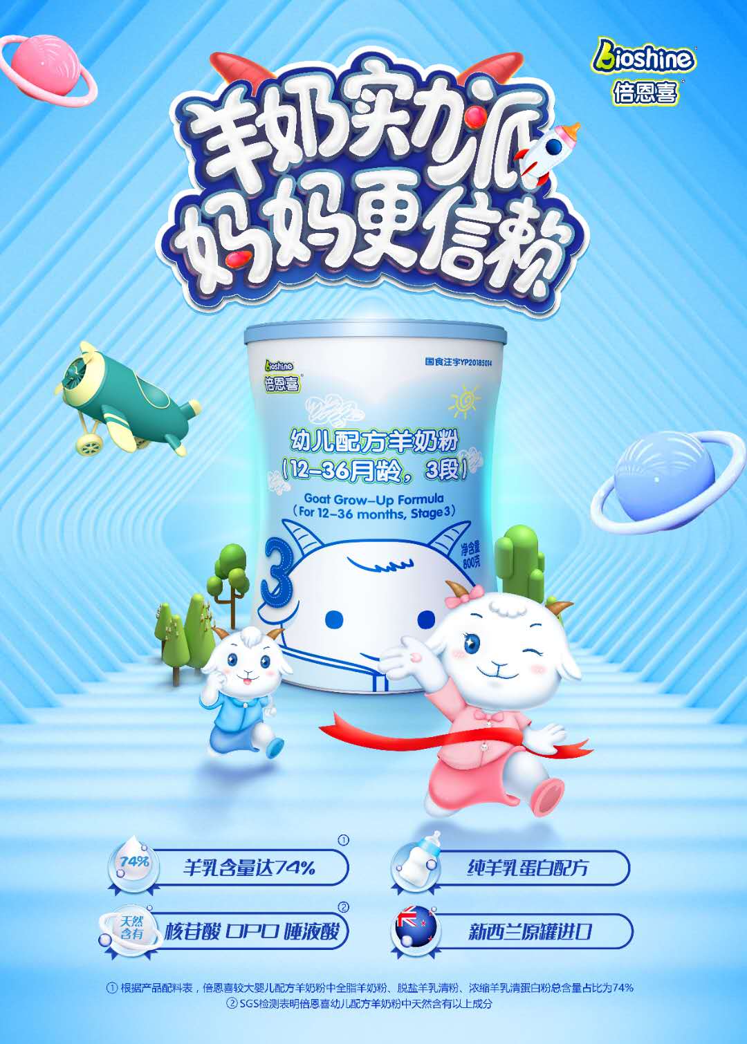 多维营养,科学配方,优质奶源,倍恩喜羊奶粉品质高端,独具优势,赢得众多宝妈青睐。